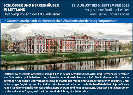 Studienreise des Kulturwerks Mitteldeutschland (Reiseveranstalter) vom 31. August bis 6. September 2026 nach Lettland